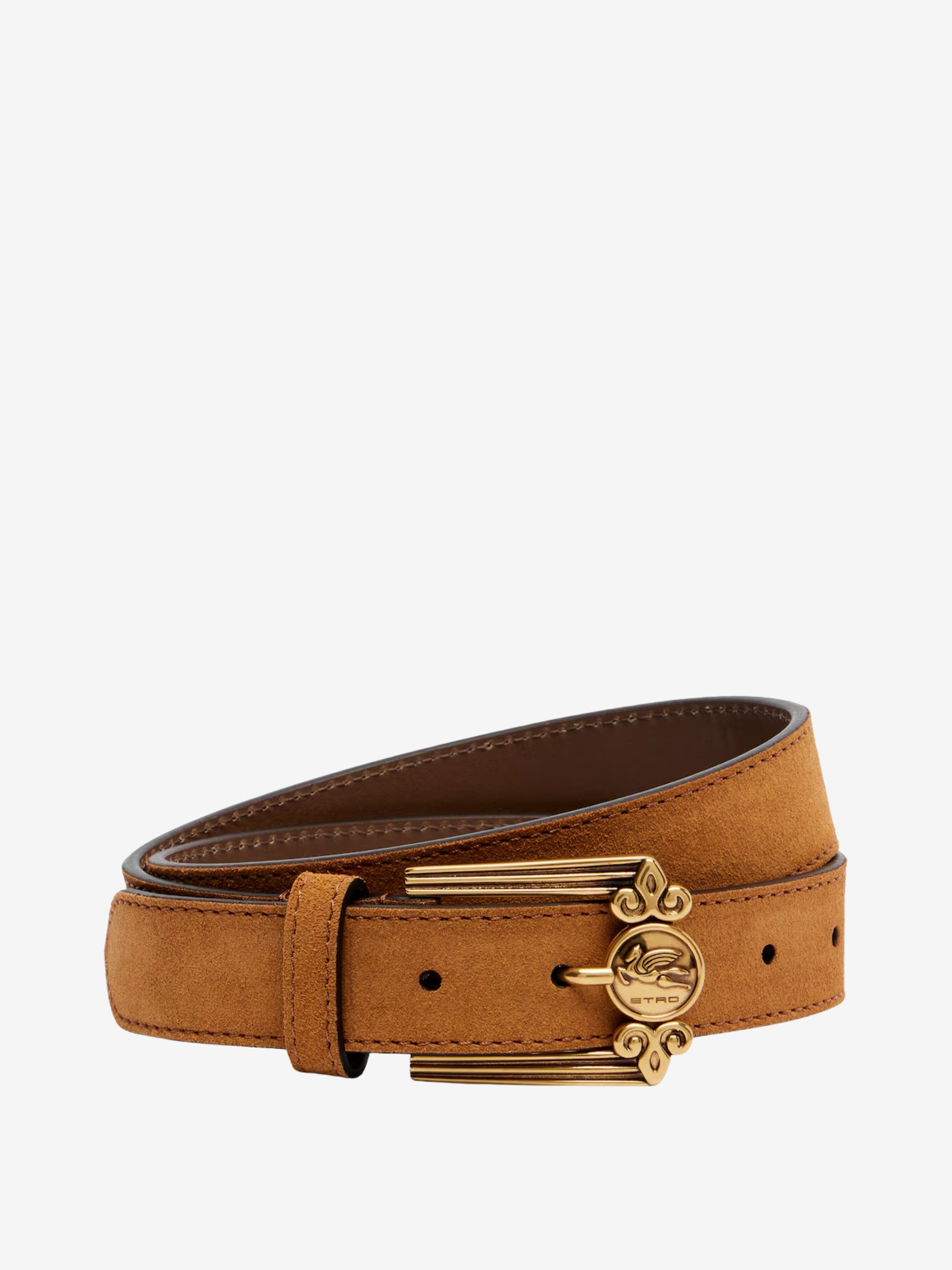 Etro Belt Logo Pegaso Suede Brown