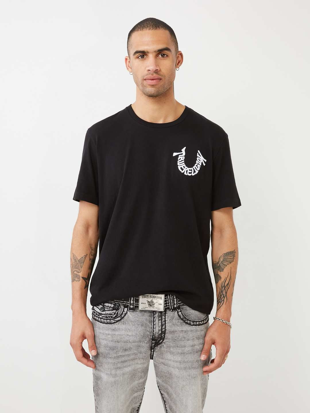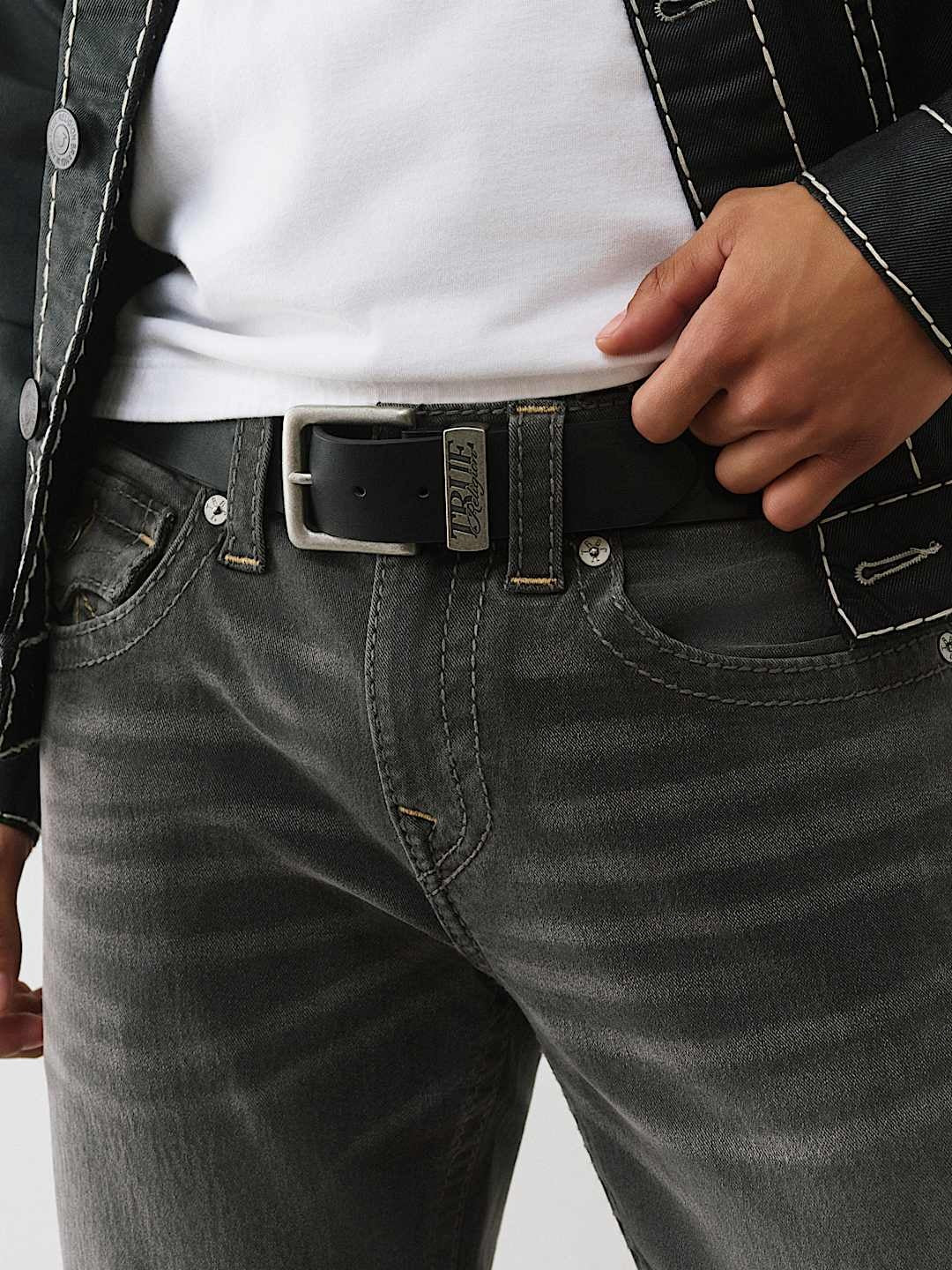 True Religion Multi Big T Stitch Belt Black