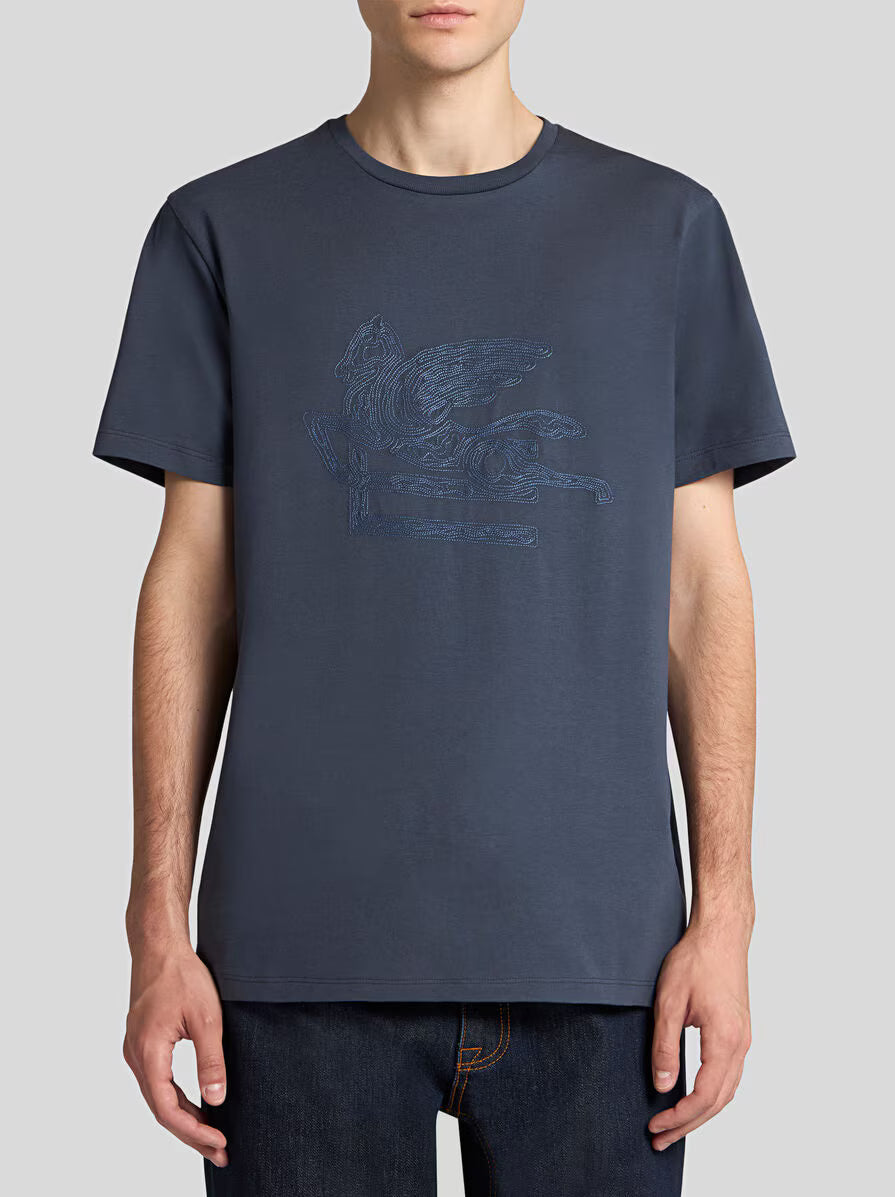 Etro T-Shirt Upper Print Navy
