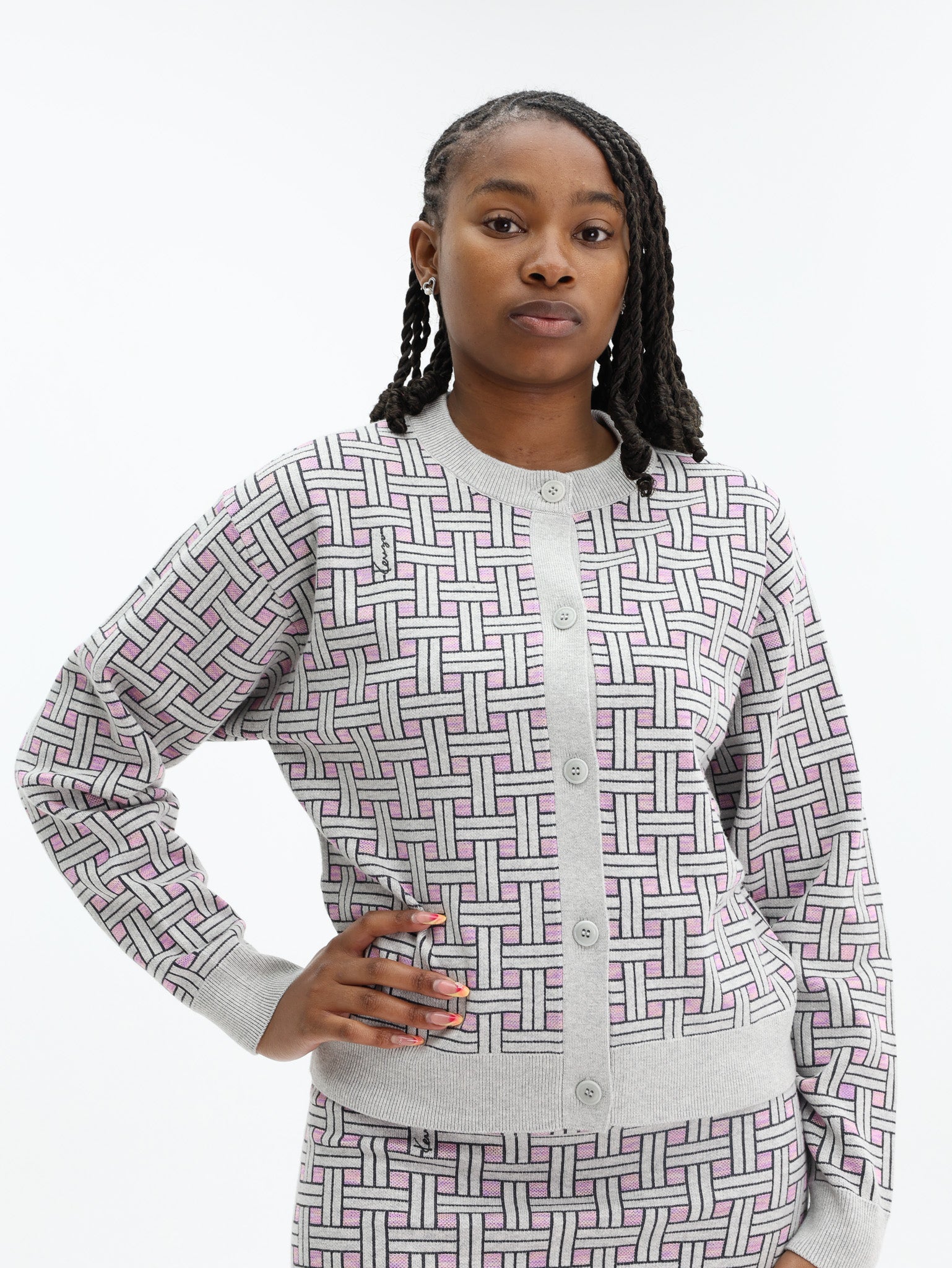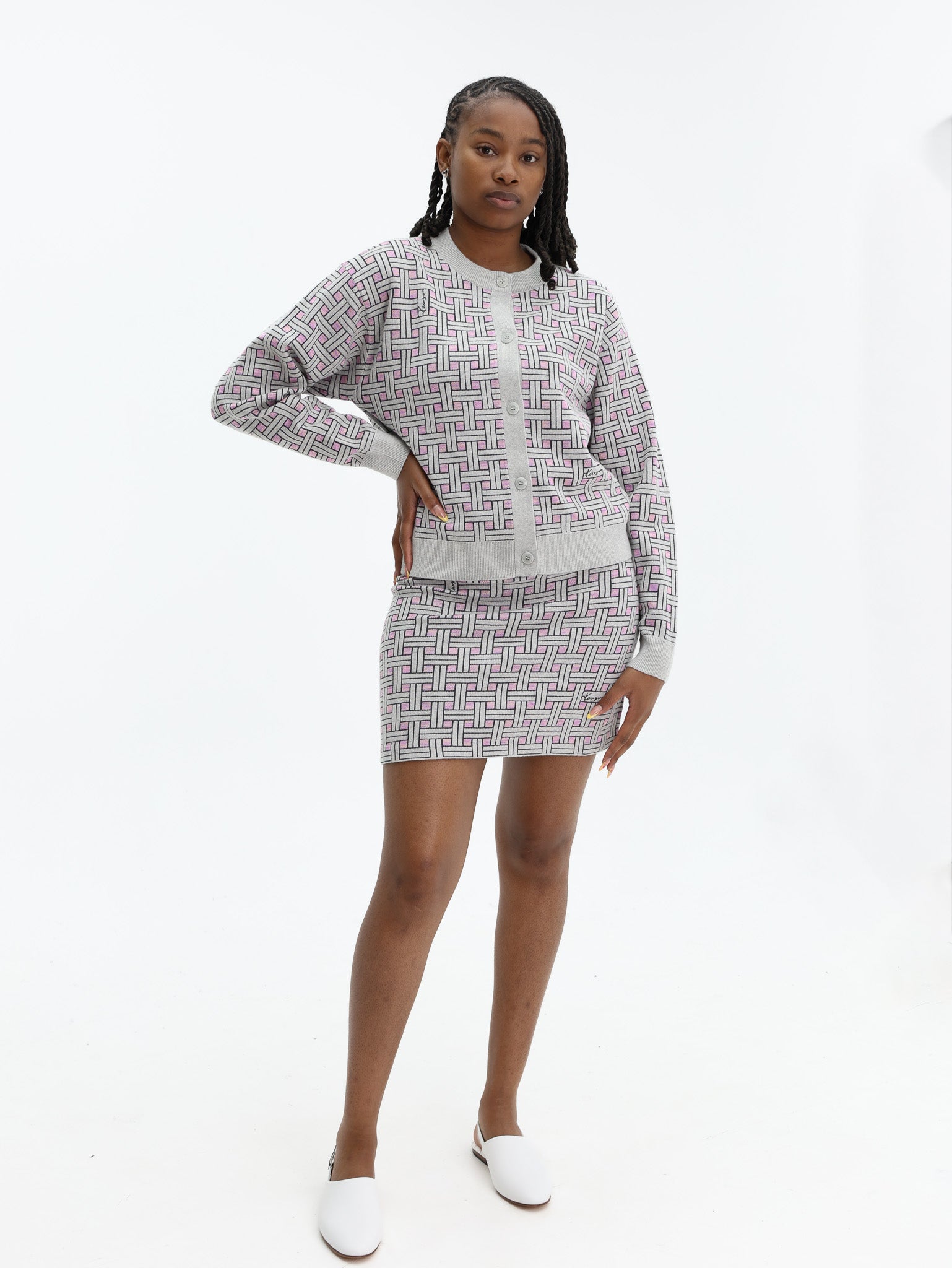 Kenzo Cardigan Checkered Pale Grey